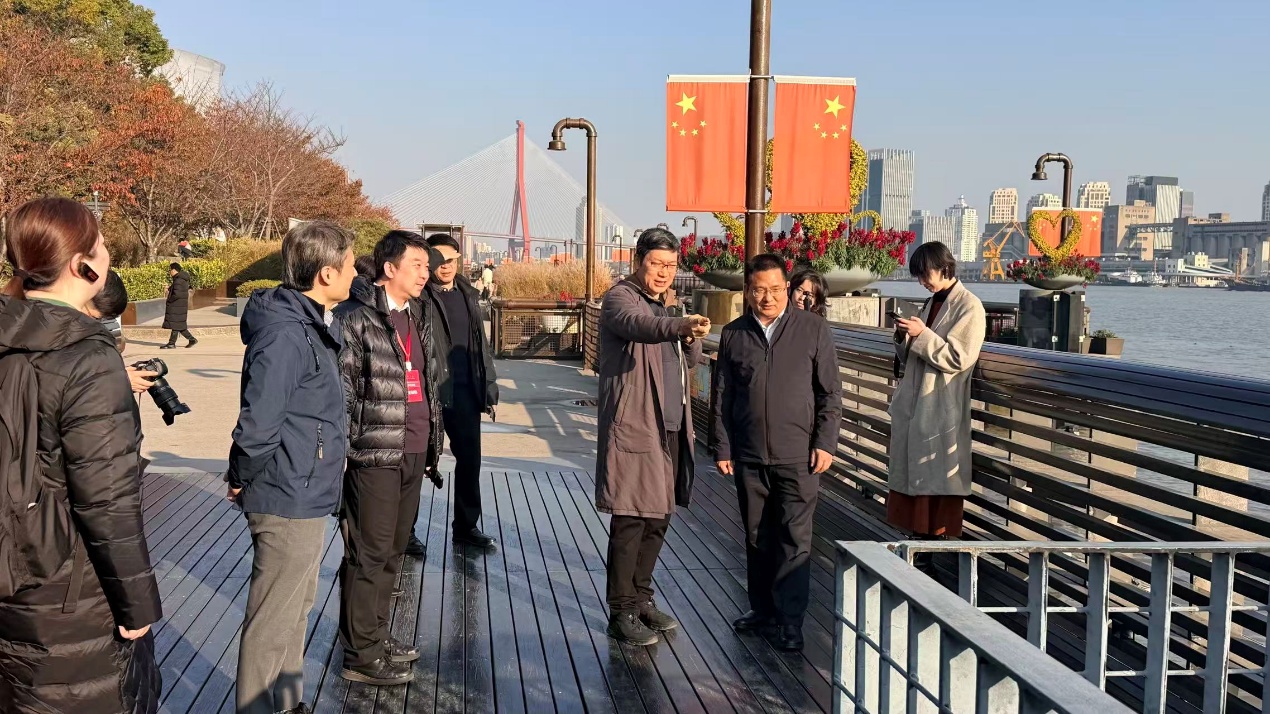当天下午,与会代表前往人民城市理念的首提地——上海杨浦滨江示范段开展现场考察,重走习近平总书记2019年考察杨浦滨江时的原线路,切身感受“人民城市人民建、人民城市为人民”这一重要理念在上海的生动实践。各基地代表还围绕“学科如何服务国家战略、回应人民需求”等议题展开交流。