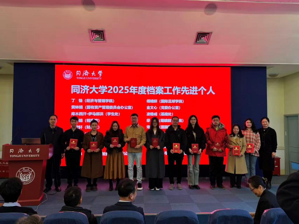 大会表彰了基建处等11家2025年度同济大学档案工作先进集体和丁愉等18位2025年度同济大学档案工作先进个人。