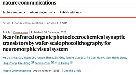 近日,材料科学与工程学院黄佳教授团队在有机晶体管感知器件领域取得进展,《自然·通讯》(Nature Communications)在线发表了团队题为“Near-infrared organic photoelectrochemical synaptic transistors by wafer-scale photolithography for neuromorphic visual system”的研究论文。