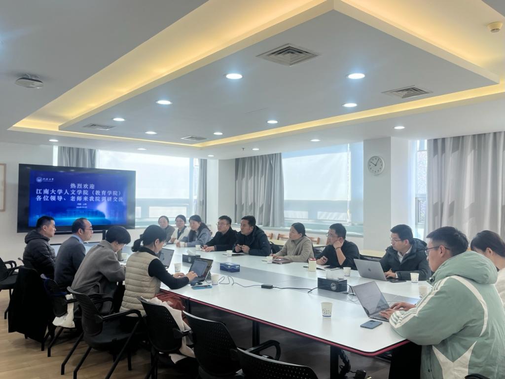 1月14日,为深化“国优计划”专项研究生培养创新,进一步提升研究生教育质量,江南大学人文学院(教育学院)院长伍红林、副院长于书娟及江南大学研究生院培养办主任高鋆一行来到同济大学职业技术教育学院开展“教育学类研究生教育改革创新”专题调研学习。双方围绕“国优计划”的制度设计、支持保障与育人成效等内容进行了深入交流与经验分享。