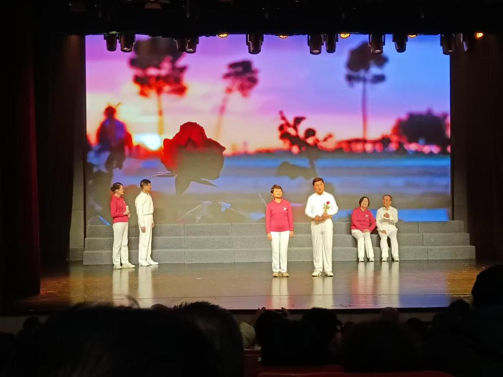 本次联欢会在普陀区老干部工作共同体成员单位中征集并选拔出12个节目演出,涵盖舞蹈、合唱、朗诵、时装戏曲等多种形式。其中,同济大学欢乐颂朗诵队的情景剧《永远的风华正茂》表演形式别开生面,内容饱含深情,在佘小璐、董晓佩、曹新建等老师的细腻演绎中,展示了积极的生活态度和饱满的精神面貌,赢得了观众的掌声与赞美,并获颁“骐骥千里奖”。