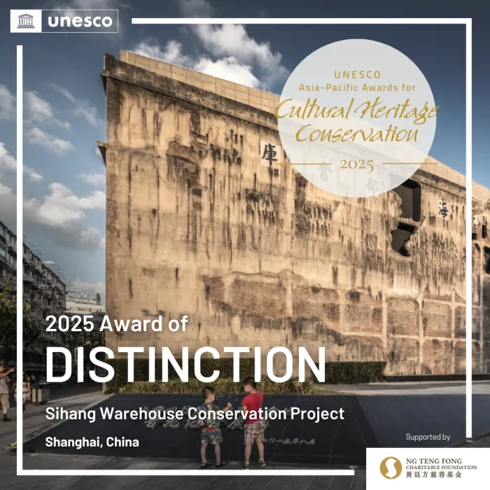 此外,同济大学校友、全国工程勘察设计大师、上海建筑设计研究院资深总建筑师唐玉恩主持设计的“上海四行仓库保护项目”荣获“文化遗产保护卓越奖”(Award of Distinction)。该项目审慎保护了建筑结构中嵌入的历史痕迹,将工业遗产转化为承载城市记忆与集体纪念的公共场所。