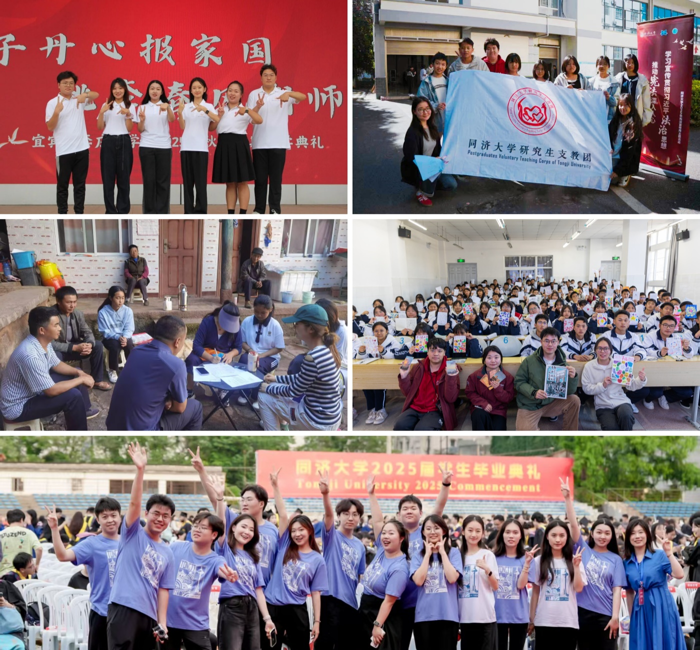 同济大学研究生支教团积极响应国家号召,扎根西部二十余载,成为西部乡村教育一线的坚实力量。学校累计选拔派遣200余名优秀学子,奔赴云南云龙、元谋及四川李庄等地,实现教学全学科覆盖,全力助力当地学生提升学业水平;同时创新性开展AI科普、乡土美育等第二课堂活动,为西部学子打开看世界的窗口。他们用青春与汗水践行教育帮扶使命,让“同舟共济”的精神在西部大地生根发芽。