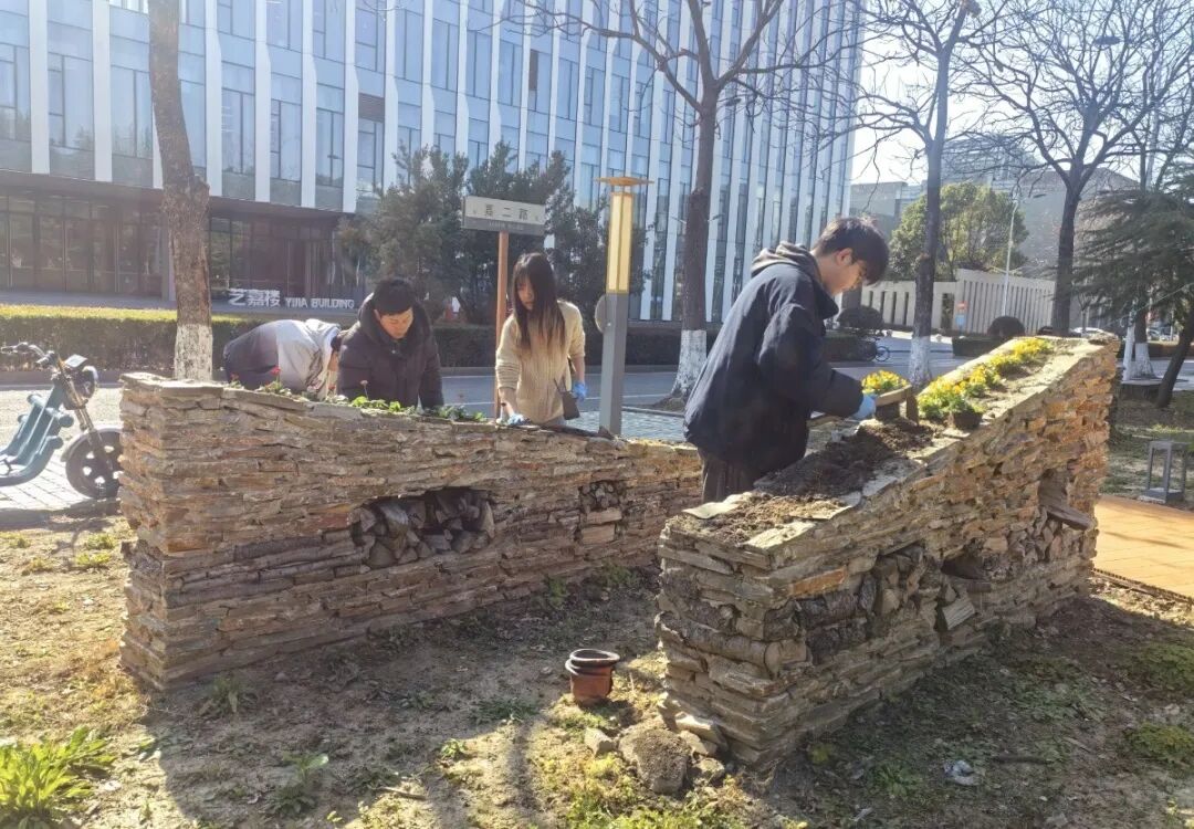 今天,师生们正在各校区劳动实践教育基地挥锹铲土、扶苗培土、浇水固根,忙得不亦乐乎。原本平淡无奇的角落,在这个春天正焕发出勃勃生机。