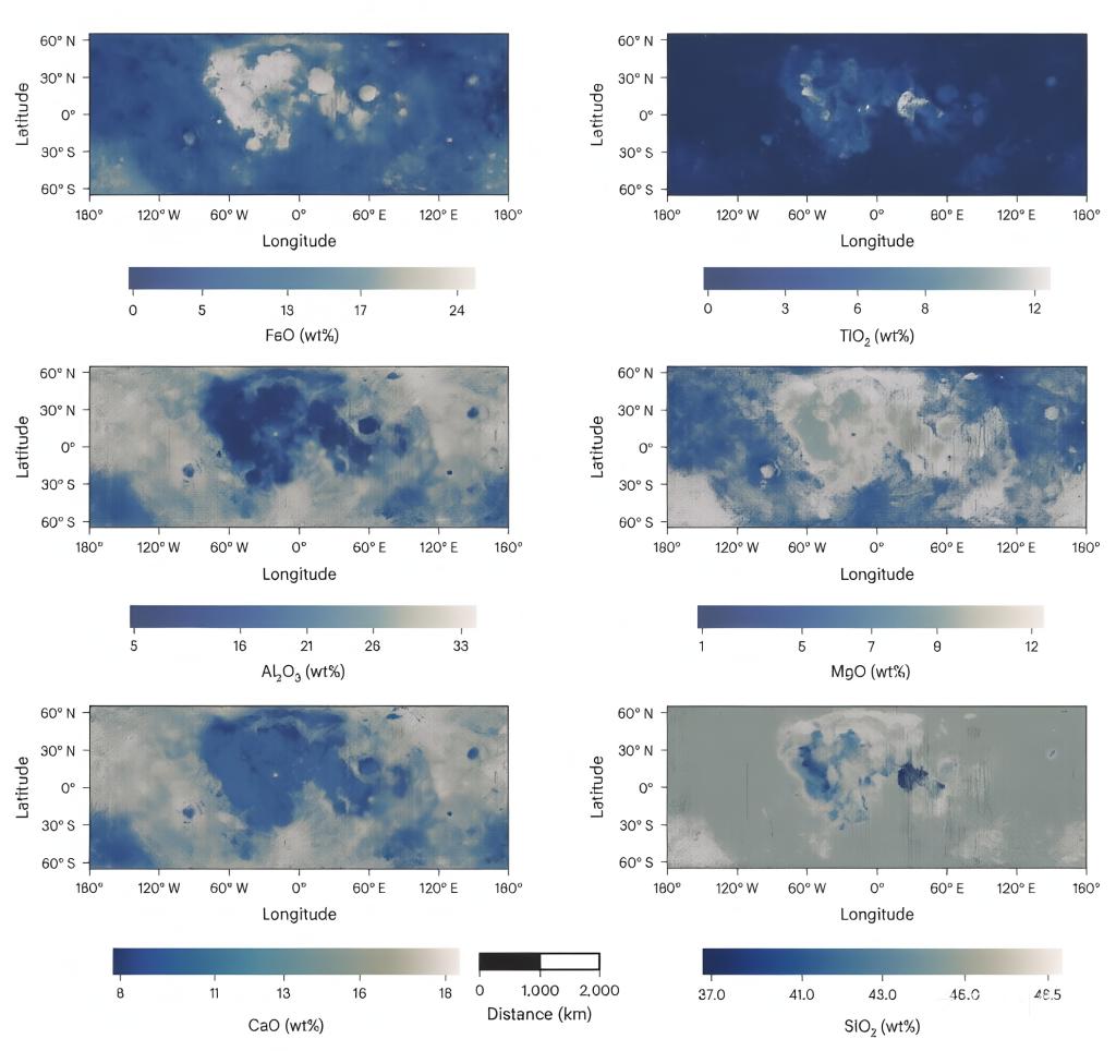 研究团队深度融合人工智能与行星测绘遥感等多学科优势,利用嫦娥六号世界首个月球背面样品实测数据与月球正面样本数据,结合月球轨道器多波段光谱成像数据,创新构建残差卷积神经网络模型和微调策略的月球化学成分智能反演方法,研制了新一代全月六类主要氧化物含量和镁指数分布图,揭示了全月三大地体(月海、高地、南极-艾肯盆地)的元素分布特征和南极-艾肯盆地深部物质暴露特征,为深入解析月球特别是月球背面的地质演化历史、指导月球资源勘探和任务规划提供了新的科学依据。