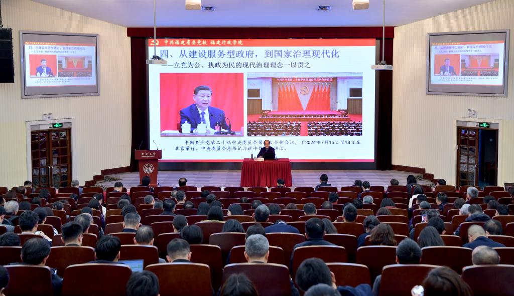 李海星以丰富的案例和生动的语言,从八个方面深入阐述了习近平新时代中国特色社会主义思想在福建孕育与实践的历程。他指出,从造福八闽,到为国担当,习近平总书记始终把人民放在心中最高位置,始终全心全意为人民服务,始终为人民利益和幸福而努力工作,充分展现了他担当有为的公仆情怀。树立和践行正确政绩观,就要以造福人民为最大政绩,倾听人民呼声,在更高水平上不断满足人民日益增长的美好生活需要,把以人民为中心的根本立场落到实处。