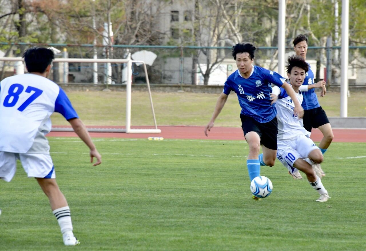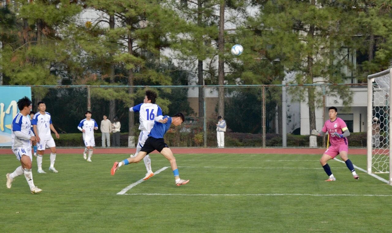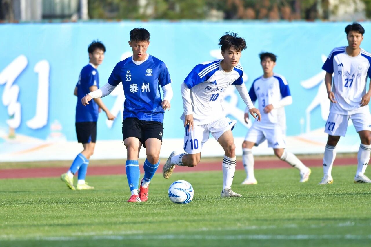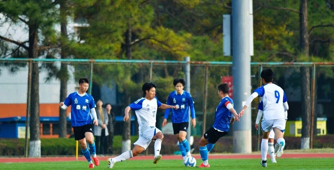 绿茵场上,足球友谊赛同步进行。面对来自苏超冠军城的泰州市人才联队,作为上海市大学生足球联赛四连冠得主的同济大学队不甘示弱。比赛进入下半场,泰州市人才联队率先进球。面对0比2暂时落后的局面,同济大学队并未退守。随着主罚点球破门、一蹴而就射门,同济大学队接连拿下两分,打成2比2平局。焦灼对决后,点球大战将气氛推向高潮。前五轮双方战成5比5,鏖战至第七轮,泰州市人才联队门将一记扑救,锁定胜利。最终,泰州市人才联队以点球7比6惊险获胜,整座球场一片沸腾,观众直呼过瘾。