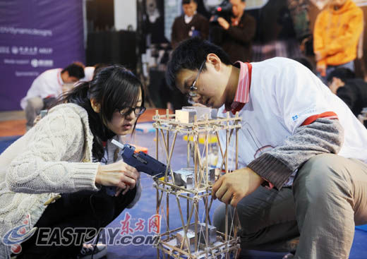 【东方网】大学生设计防震医院比高下 可挺过10级特大地震(组图)