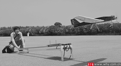 同济大学航空航天与力学学院2013届的本科毕业生正在试飞弹射小飞机。受访者供图