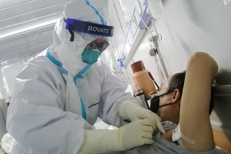 病区是由彩钢板建成的,病房被外走廊、内走廊层层围住,病人终日看不到太阳。王静组建了康复团队,定期带病人做操,做八段锦。“我们用手套加吸管,做成简易吹气装置,帮助病人锻炼肺部功能。”她说,康复要贯穿治疗的全过程,这样病人在治疗结束以后才能达到完美的康复状态。“这些理念过去一直都有,但在武汉得到了很好的实现。”