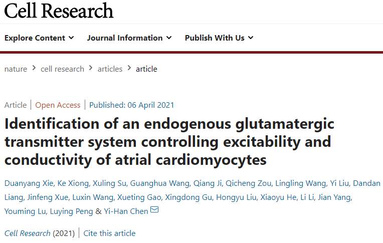 心电活动驱动心脏收缩,心电活动的紊乱可以导致多种多样的心律失常甚至心源性猝死的发生。正常情况下,人的每一次心跳均由心脏起搏细胞释放的电脉冲所触发。传统观念认为,作为心脏跳动指令控制中枢的起搏细胞,释放的电脉冲是通过“导线”——即心脏的电传导系统和心肌细胞间的缝隙连接通道——发送到每一个心肌细胞的,从而引起心肌同步收缩和心脏泵血,维持机体的血液供应。同济大学医学院和附属东方医院陈义汉院士团队最新发现,心房心肌细胞和窦房结起搏细胞存在内源性的谷氨酸递质系统。该系统以类似大脑谷氨酸能神经元的兴奋和传导模式在心房心肌细胞中行使功能,并且作为起搏细胞内在固有模件显著性地调控心脏起搏活动和心跳频率。