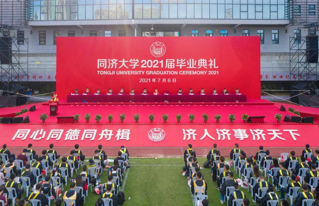 东方网记者傅文婧7月7日报道:为避免阳光炙烤,毕业典礼傍晚时分开幕,延续到晚间;校领导为现场参加毕业典礼的每一位学子一一拨穗,拨穗历时近3个小时;师生共绘的百米学党史长卷庆祝建党百年……7月6日傍晚,同济大学2021届毕业典礼在四平路校区一·二九运动场举行。校党委书记方守恩、校长陈杰等全体校领导出席典礼,并为现场每一位毕业学子拨穗。