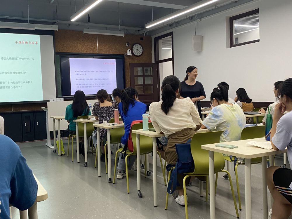 “爱情不是大学的必修课,孤独才是”——在“生命的孤独”主题课上,师生一起用图片感受生命中的三层孤独:自我孤独、人际孤独和存在性孤独,让同学们讨论体验过哪些类型的孤独,最难熬的是哪种,和孤独相处的体验是什么?在两人搭档的角色扮演中,一位同学扮演另一位同学的孤独过往,二者尝试对话。