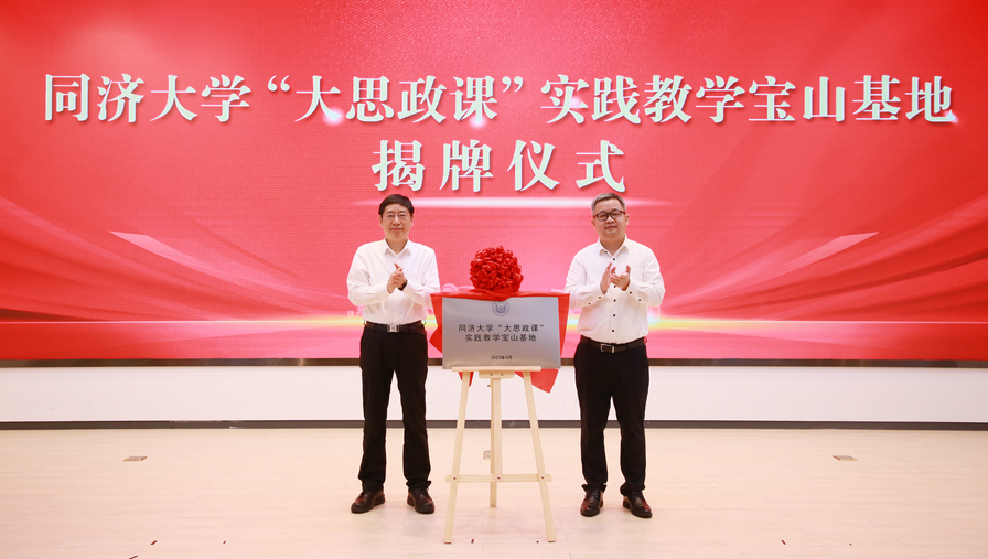中共宝山区委常委、宣传部部长胡宝国与同济大学党委副书记吴广明为同济大学“大思政课”实践教学宝山基地揭牌。基地的建立标志着区校双方将通过建立常态化合作机制,创新大思政课实践教学场景和方式,以高校优质资源赋能区内爱国主义教育基地、新时代文明实践中心等宣教场馆,进一步拓展宝山“三全六讲”党的创新理论大众传播阵地,为奋进“北转型”提供更坚强的思想保证。