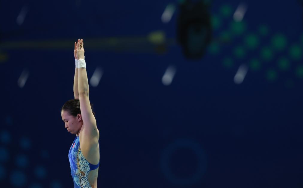 7月31日,陈芋汐在2025年世界游泳锦标赛跳水女子10米台决赛中夺冠。新华社记者 雒圆 摄
