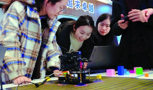 抓取力度不稳、程序突然卡顿……课堂上讲过的理论难题,在实战中变得无比真实。有一组同学的机械臂因过热导致程序“罢工”,全队迅速在10分钟内分工协作:有人负责“捉虫”查代码,有人检测硬件连接,还有人想办法给设备降温……这种在真实项目中淬炼出的抗压能力与团队精神,正是学院致力培养的核心素养。