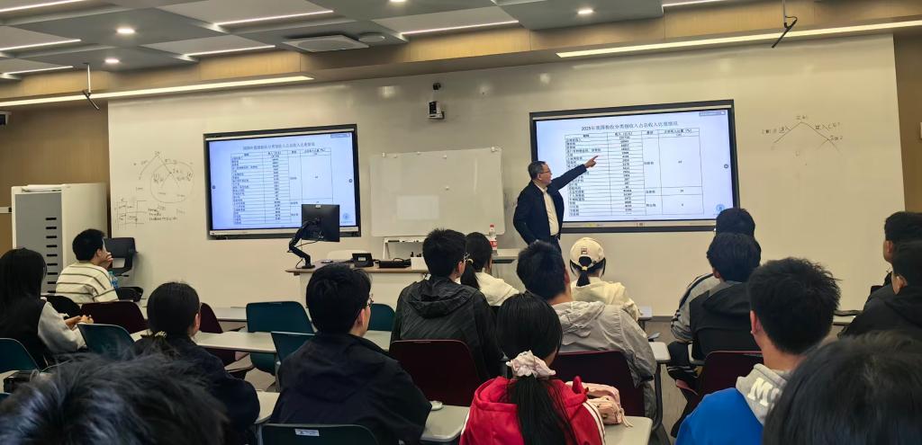 上海财经大学刘小兵教授引导高中生们“读懂国家账本”。 姜泓冰摄