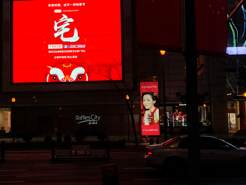 2月2日,上海街头的大屏幕广告。澎湃新闻记者 周平浪 图