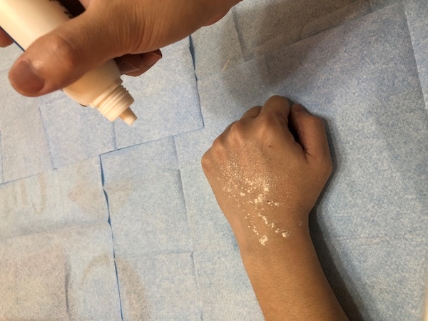 ① 适量造口粉洒于皮炎处,均匀涂抹,停留20-30秒后,清除多余的粉末;