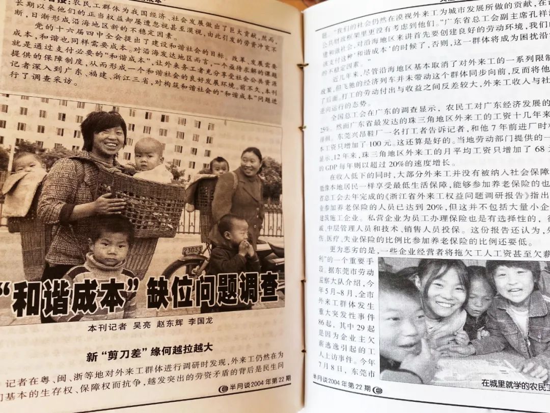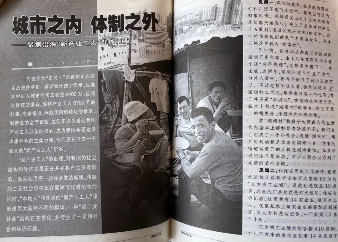 在半月谈编辑部,我们两个“记者中的农民工”几乎是流着眼泪向时任半月谈副总编辑张正宪汇报了调研情况。当时新华社跑基层调研的很多记者有一个习惯,就是调研结束后到半月谈找张正宪“摆龙门阵”,有时候两瓶啤酒,几盘小菜,就能从中午聊到深夜。我们向张总汇报完情况后,张总也流泪了,他当即决定,以专题报道形式向我们约写一组调查报道。很快,《城市之内、体制之外——聚焦沿海“新产业工人”群体》在《半月谈内部版》刊出。同期,我们撰写的内参稿件也获得中央领导批示。《半月谈内部版》实际上是公开发行的刊物,这“一内一外”的报道,在社会引起很大反响。