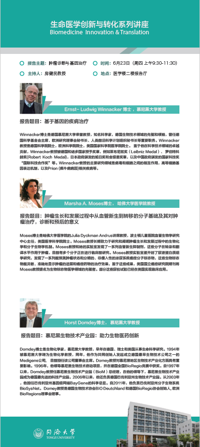 Moses博士是哈佛大学医学院的Julia Dyckman Andrus讲席教授,波士顿儿童医院血管生物学研究中心主任,美国医学科学院院士。Moses教授长期致力于研究和阐明肿瘤生长和发展过程中的生物化学和分子生物学机制。Moses教授和她的实验室发现了一系列血管新生抑制剂,这些分子在转录和翻译水平作用于肿瘤,目前有多个分子正在进行临床前研究。Moses教授实验室蛋开创了尿液蛋白质组学研究,发现了一系列能预测肿瘤状态和分期的、非侵入性的泌尿系统癌症分子标志物,这些生物标志物能灵敏、准确地显示肿瘤的进展和癌症药物的治疗效果,鉴于这些成果,美国国立癌症研究院期刊将Moses教授提名为生物标志物医学领域的先驱者。部分这些尿检试验已经在美国实现临床应用。