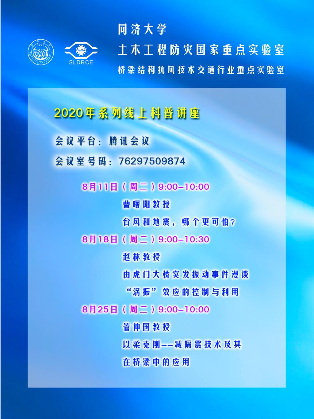 英文网链接:Popularscience lectureseries to be heldby Civil Engineering Key Laboratoriesin August 2020
