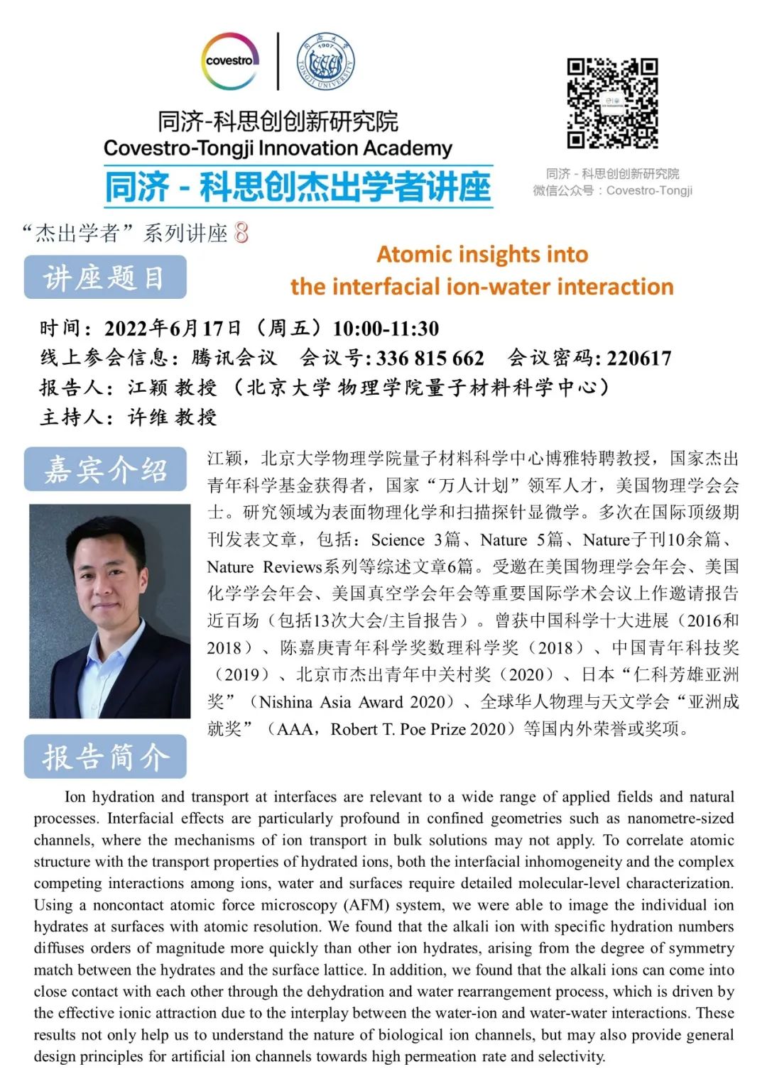 (6月17日)同济—科思创杰出学者讲座