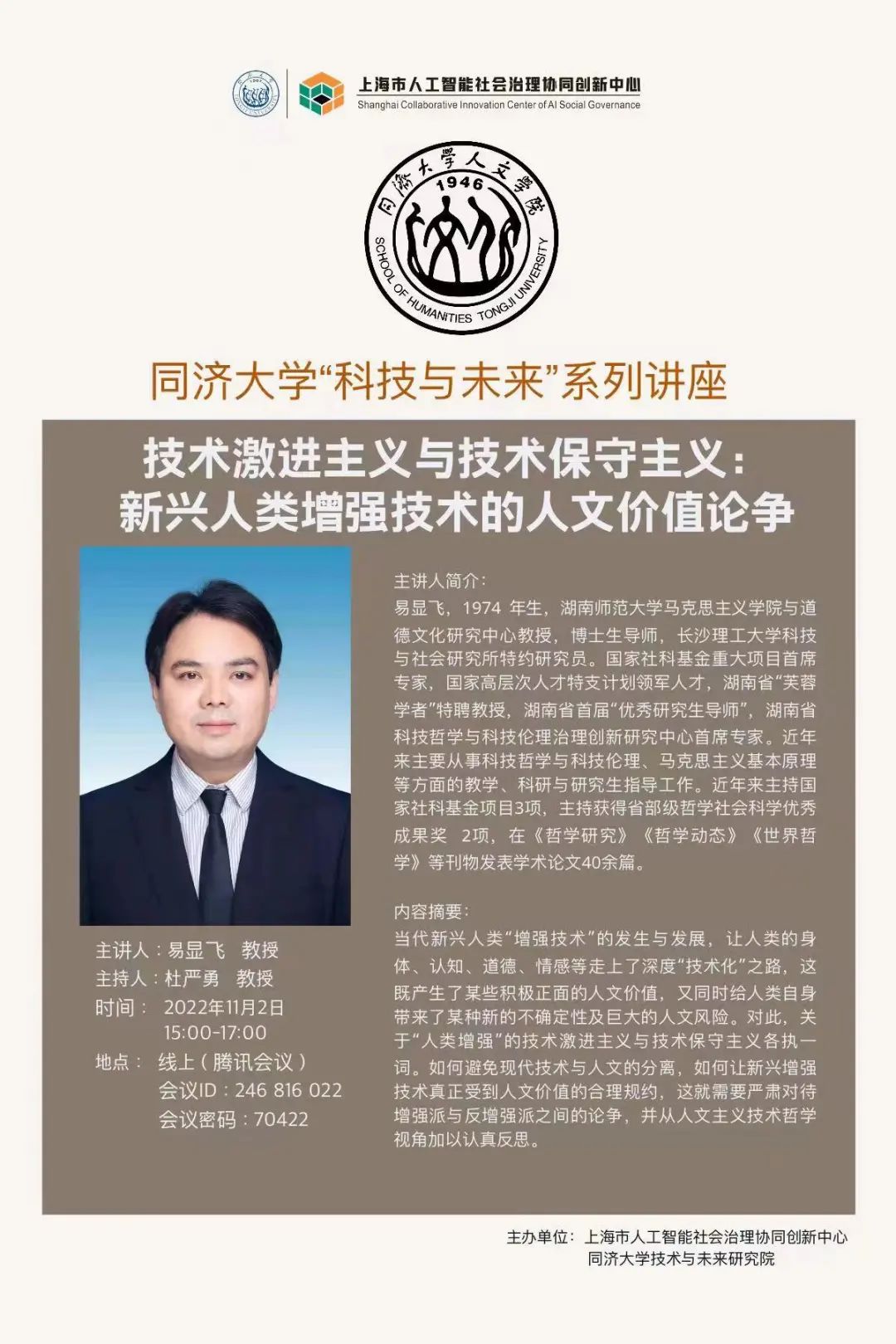 (11月2日)技术激进主义与技术保守主义:新兴人类增强技术的人文价值论争