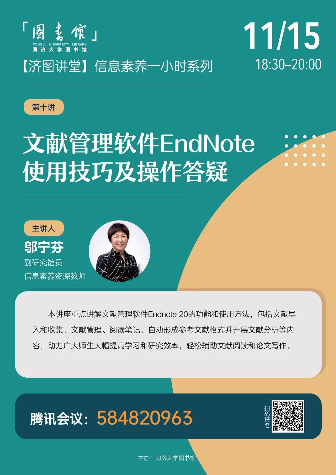(11月15日)文献管理软件EndNote使用技巧及操作答疑