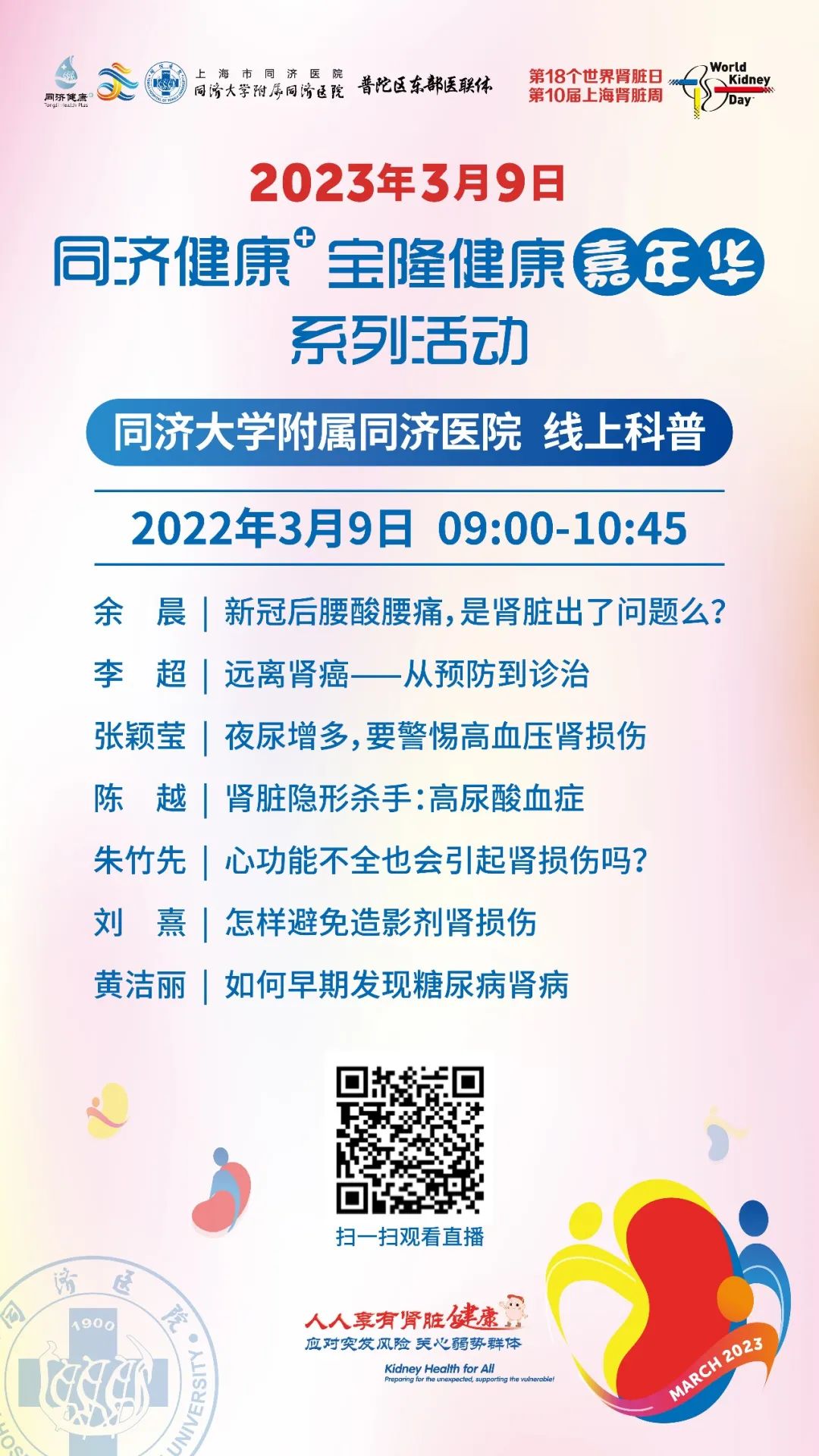 (3月9日)世界肾脏日“同济健康”线上科普直播系列活动