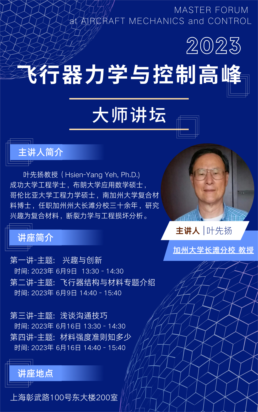 (6月9日)飞行器力学与控制高峰2023大师讲坛