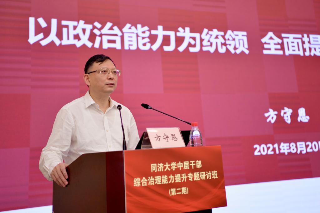 8月20日下午,为期一周的同济大学中层干部综合治理能力提升专题研讨班(第二期)完成所有培训内容,圆满收官。校党委书记方守恩作了题为《以政治能力为统领,全面提升干部治理能力》的结业报告,校长陈杰等全体在...