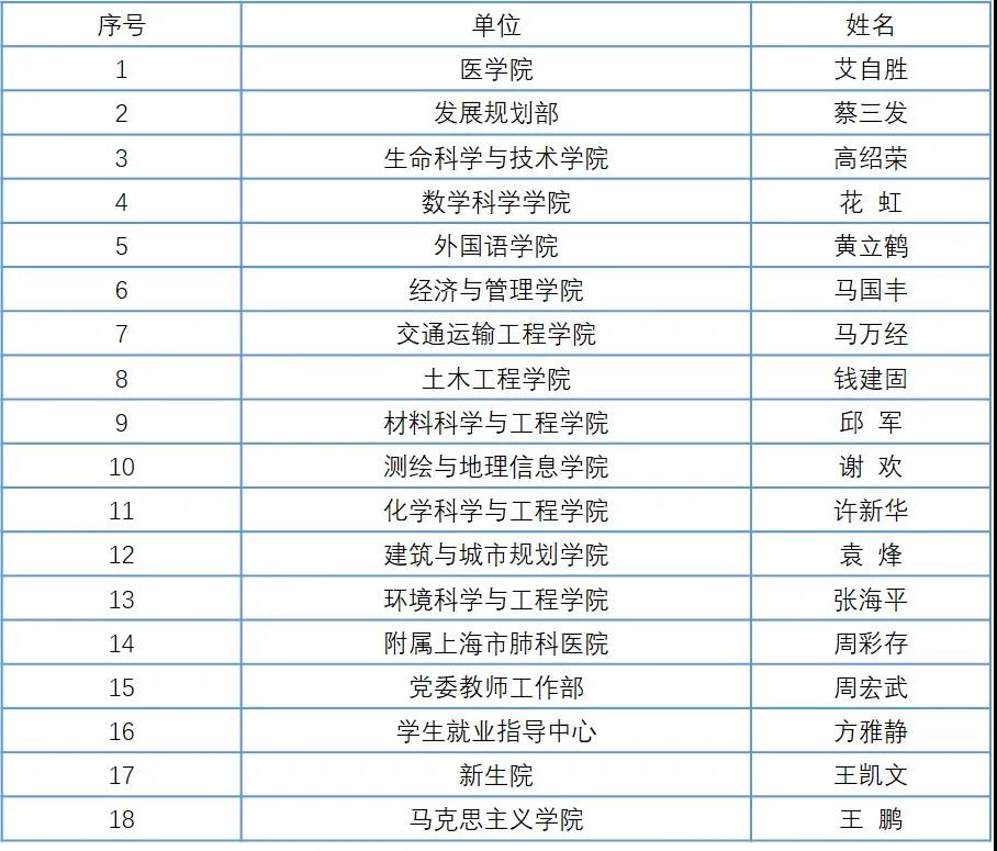 近日,上海市教育发展基金会公布了2021年“上海市育才奖”获奖名单,同济大学18位教师名列其中。这18位获奖教师分别是:艾自胜(医学院)、蔡三发(发展规划部)、高绍荣(生命科学与技术学院)、花虹(数学科学...