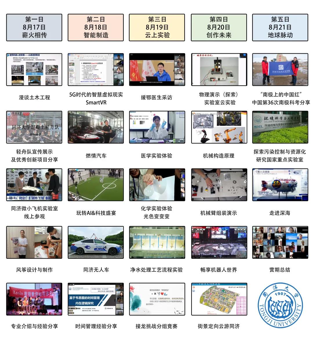8月17日至21日,“筑同心·扬济梦”2020年青少年高校科学营同济大学分营在我校举行。五天时间里,来自全国16个地区21所中学的218名师生云上“相聚”,体验了同济大学带来的科技盛宴。此次科学营同济分营以“薪火相...
