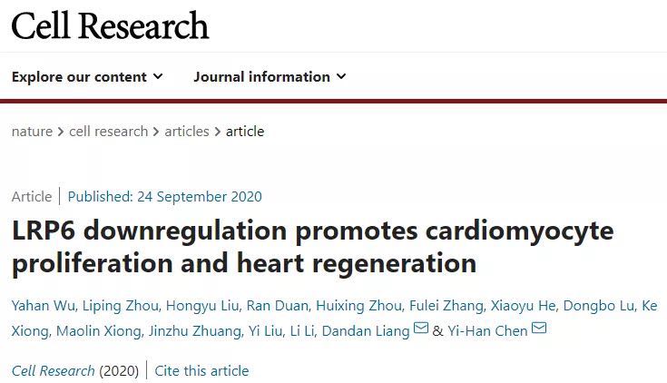 陈义汉、梁丹丹发现心肌细胞增殖的关键调节蛋白LRP6,论文在线发表于“C...